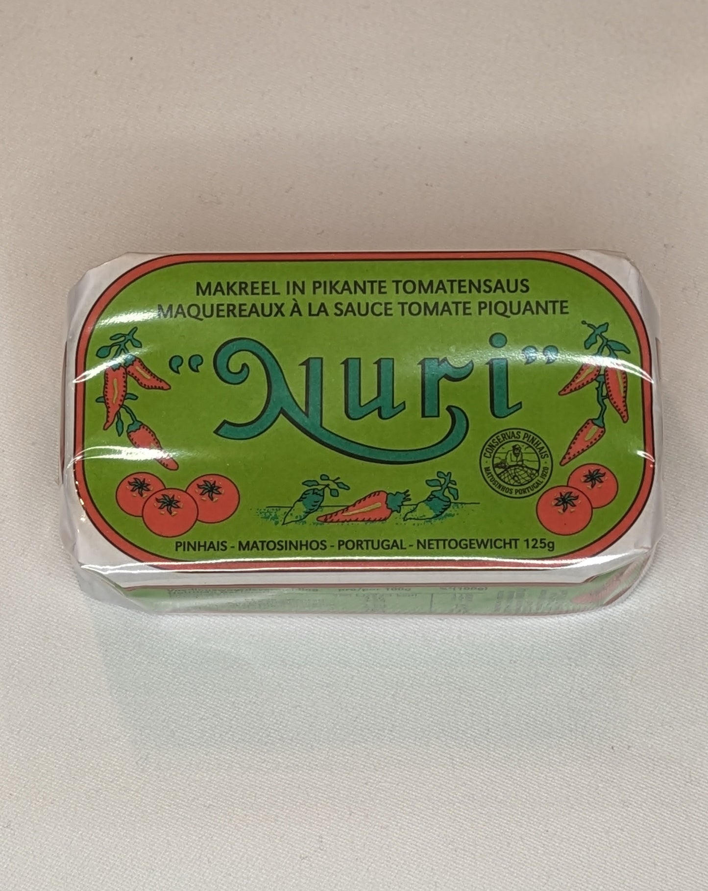 Deze makreel in pikante tomatensaus van Nuri is heerlijke makreel, te gebruiken op toast, door gerechten en zo lekker bij de borrel.